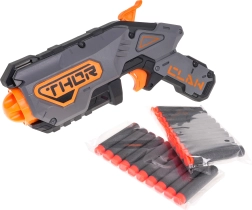Der Blaster Blaze Storm ist im Stil des Futurismus gestaltet, der sowohl Kinder als auch Erwachsene begeistert. Das elegante graue und orangefarbene Design verleiht dem Produkt ein modernes Aussehen.