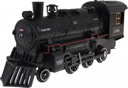 Eisenbahnstrecke mit rauchender Lokomotive, Licht und Musik