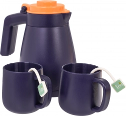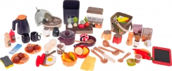 Das Set umfasst 88 verschiedene Zubehörteile, darunter eine Kreidetafel, ein Kochei, Geschirr und Spielzeuglebensmittel, für fantasievolle Kochideen.