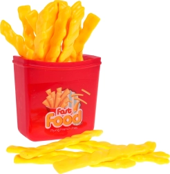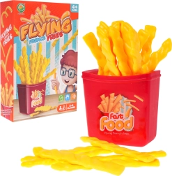 Geschicklichkeitsspiel Pommes ist ein unterhaltsames Spiel, geeignet für Kinder ab 4 Jahren und Erwachsene. Es kann von 2 bis 4 Spielern gleichzeitig gespielt werden. Ziel des Spiels ist es, die richtige Pommes zu ziehen – wählt man die falsche, schießen alle Pommes nach oben!