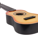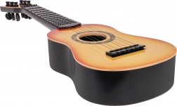 Das leichte Material mit Holzstruktur ist angenehm anzufassen, pflegeleicht und wirkt zugleich realistisch. Die kompakten Maße erleichtern das Halten und Transportieren, wodurch die Gitarre sowohl für zu Hause als auch für unterwegs geeignet ist.