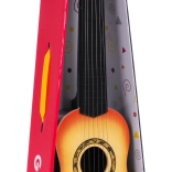 Diese Kinder-Gitarre ist eine hervorragende Wahl für die ersten Schritte in die Welt der Musik. Dank der sechs Metallsaiten und der funktionalen Wirbel bietet sie einen Klang, der einer klassischen Gitarre nahekommt, sodass Kinder Rhythmus, Koordination und grundlegende Spieltechniken leicht erlernen.
