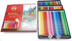 Das Set aus 72 sechskantigen Aquarellbuntstiften KOH-I-NOOR Mondeluz erfreut jeden kleinen Künstler und jeden Schüler. Die Stifte überzeugen durch Lichtechtheit, Farbreinheit und eine breite Farbpalette. Bei Anwendung von Wasser mit einem Pinsel lässt sich der Strich vollständig vermalen und anschließend die Technik der Aquarellzeichnung anwenden.