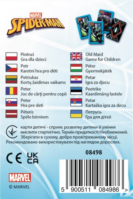 Sucht passende Paare mit den Helden aus der Welt von SPIDERMAN und werdet alle Karten schneller los als die anderen. Das Set enthält 25 Karten (12 Paare + 1 Schwarzer Peter), sodass euch bei jedem Zug viel Spannung und Spaß erwartet. Die Runden sind schnell und damit ideal für kurze Pausen oder längeres Spielen mit der Familie.
