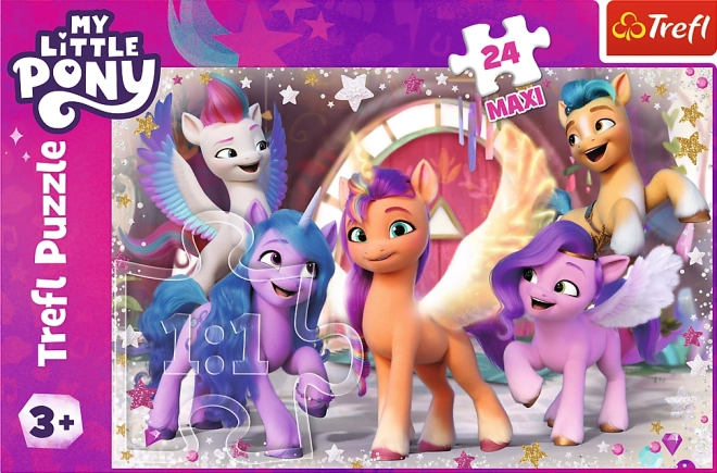 Entdecken Sie den Spaß mit der Welt von MY LITTLE PONY. Dieses 24 Maxi Puzzle wurde für kleine Hände entwickelt – größere Teile lassen sich leicht greifen und verbinden und fördern die Feinmotorik, Konzentration sowie das Erkennen von Farben und Formen. Nach dem Zusammensetzen erhalten Sie ein klares, farbenfrohes Bild der beliebten Ponys im Format 60 × 40 cm.