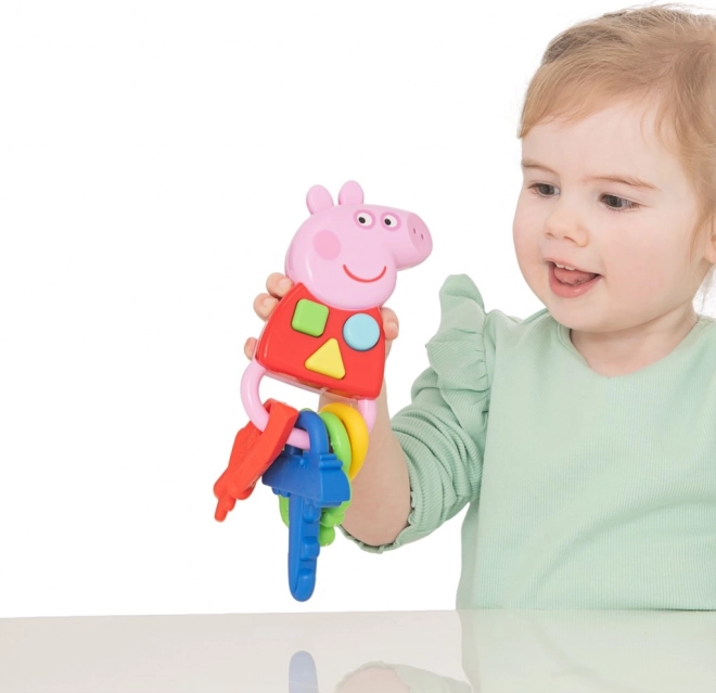 Entdecken Sie die Welt von Peppa Pig mit diesen lustigen Schlüsseln! Jeder Tastendruck bringt Licht- und Soundeffekte, die den Kindern Stunden der Freude bieten. Die bunten Schlüssel sind so gestaltet, dass kleine Kinder sie dank unterschiedlich geformter Griffe leicht halten können.