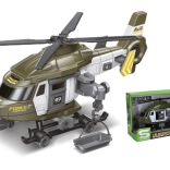 Bereiten Sie sich auf ein actionreiches Abenteuer mit diesem Militärhubschrauber vor. Dank des Knopfs am Flügel können Sie erstaunliche Licht- und Soundeffekte genießen, die jedes Spiel beleben.