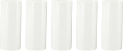 Praktische Verpackung mit fünf Rollen Papier in kompakter Größe, ideal für unterwegs.