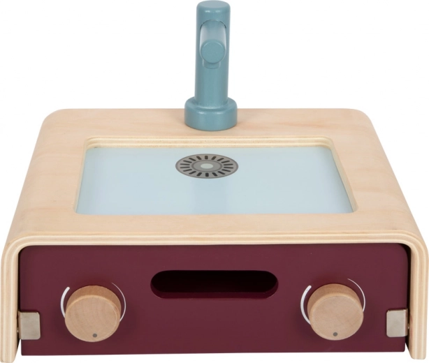 Dieser multifunktionale hölzerne Campingherd SMALL FOOT ist auf maximalen Spielspaß und Fähigkeitsentwicklung ausgelegt. Kinder können dank der zweiseitigen Konstruktion zwischen Kochen, Backen, Grillen und Spülen wechseln, wobei Ober- und Unterteil jeweils als Kocher oder Spüle dienen. Hochwertiges Holz in Kombination mit Metall und Textilien sorgt für Robustheit und Langlebigkeit.
