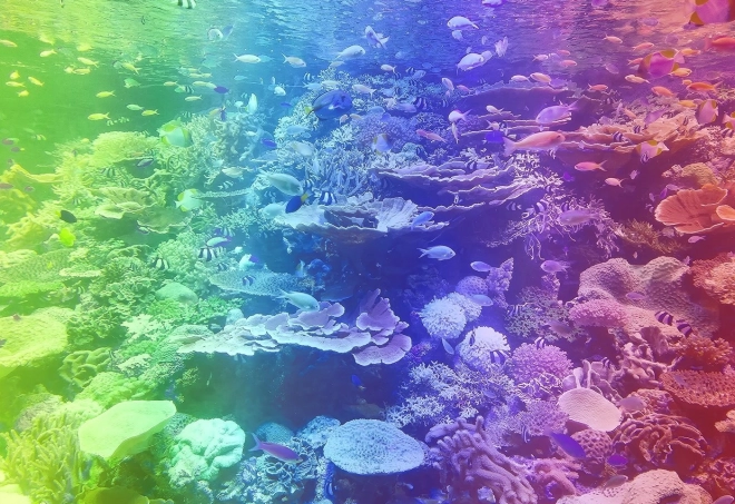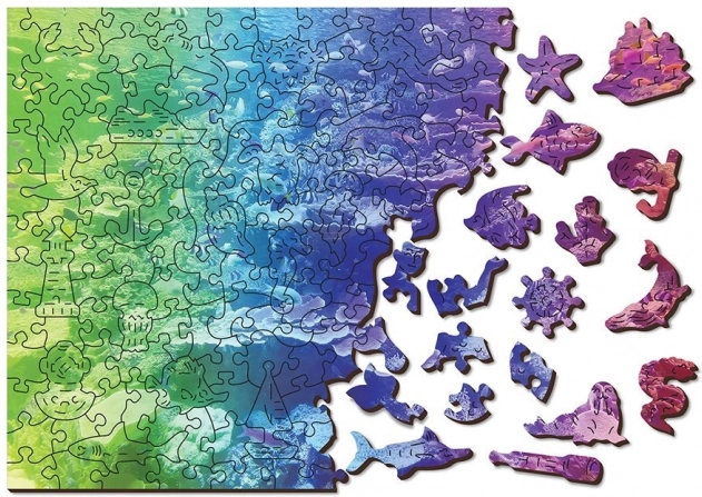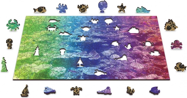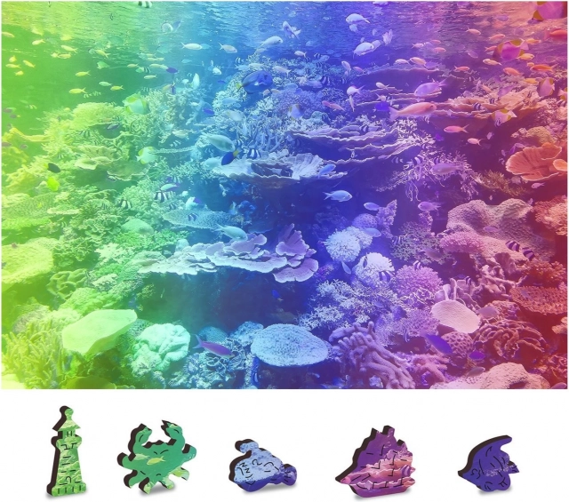 Puzzeln Sie nach dem farbigen Motiv des Korallenriffs oder stellen Sie sich der Herausforderung, die Rückseite mit Muster rein nach Formen zu legen.