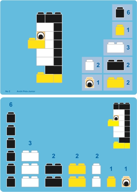 Enthalten sind 12 übersichtliche Anleitungen im A5-Format. Kinder bauen mühelos Löwe, Schildkröte, Elefant, Pinguin und weitere Tiere und gewinnen Sicherheit für eigene Kreationen.