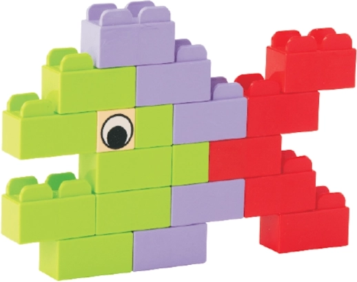 Die große Anzahl an Bausteinen fördert Fantasie und Gruppenspiel. Das einfache Stecksystem stärkt Feinmotorik, Planung und logisches Denken.
