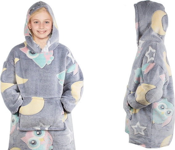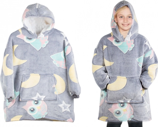 Der Pullover ist mit einer großen praktischen Tasche für die Hände oder zur Aufbewahrung kleiner Gegenstände ausgestattet. Erhältlich in universeller Größe, passt sowohl für Jungen als auch für Mädchen. Die Kapuze dient nicht nur dazu, den Kopf warm zu halten, sondern kann auch als Kissen dienen.