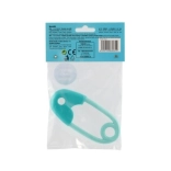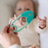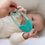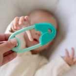 Die großen und abgerundeten Kanten der Sicherheitsnadel sorgen dafür, dass das Spielzeug von Geburt an vollkommen sicher ist.