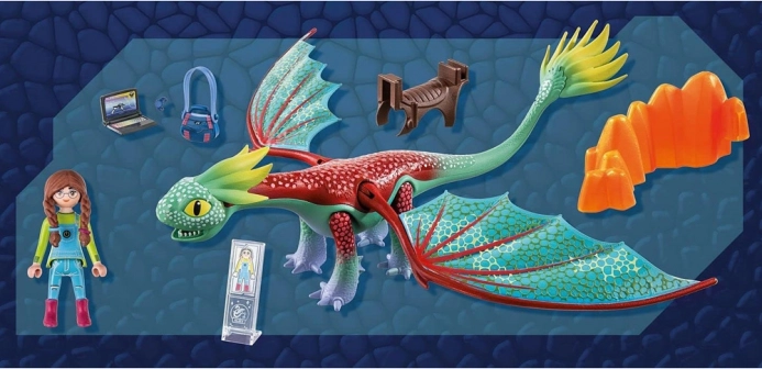 Mit diesem Bauset tauchen Kinder ganz leicht in die magische Welt der Drachen ein. Der Drache verfügt über bewegliche Beine, den oberen Teil des Kopfes und Flügel, die sich in alle Richtungen drehen lassen. Das Gefieder am Hinterkopf und an der Schwanzspitze besteht aus weichem Material für ein sichereres und realistischeres Spiel.