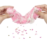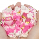 Rosa und weißer kinetischer Sand ermöglicht es Kindern, nach ihrer Fantasie zu gestalten und zu formen. Der Sand enthält zudem kleine dekorative Elemente.