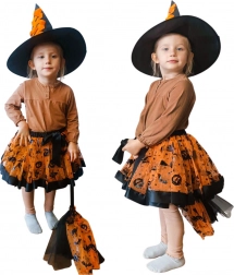 Alles, was eine kleine Hexe braucht: spitzer Hut, fluffiger Tutu-Rock und stylischer Besen im einheitlichen Design.