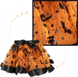 Orange-schwarze Farben mit Motiven von Fledermäusen, Sternen und Kürbissen sorgen dafür, dass Ihr Kind auf jeder Party auffällt.