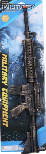 Dieses realistisch wirkende Kindergewehr wird durch ein Schwungrad angetrieben, benötigt daher keine Batterien und sorgt für stundenlangen Spielspaß. Dank der leichten Plastikkonstruktion liegt es gut in der Hand und lässt sich auch von kleineren Händen bequem bedienen.