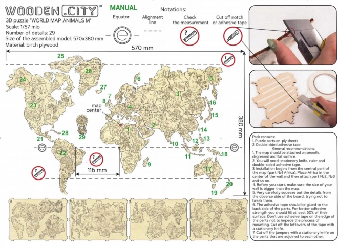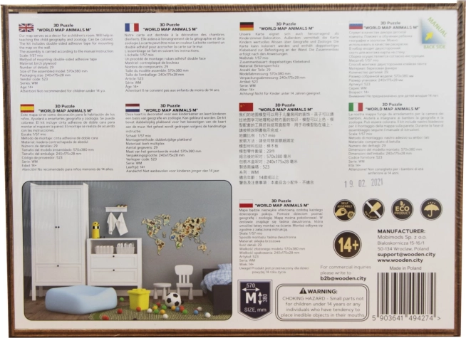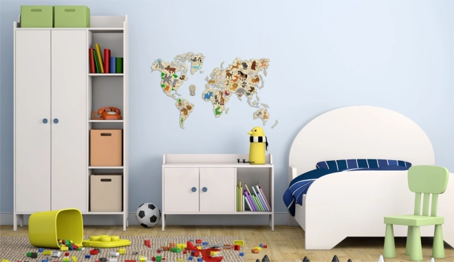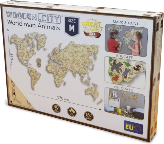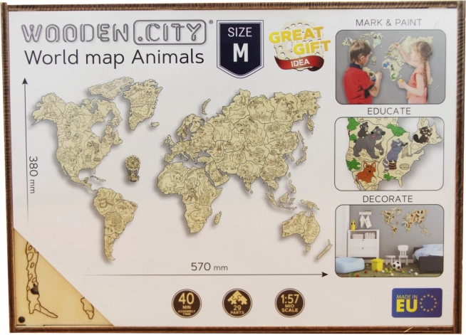Holz-Weltkarte mit Tieren Größe M (57 × 38 cm) WOODEN CITY