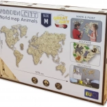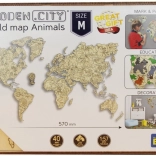 Holz-Weltkarte mit Tieren Größe M (57 × 38 cm) WOODEN CITY