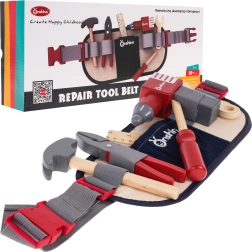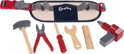 Der Werkzeuggürtel ist verstellbar und mit einer Schnalle verschließbar, enthält eine mittlere Tasche und fünf Fächer zur Aufbewahrung aller Werkzeuge des Sets. Kinder können mit Freude den Rollenspielcharakter eines Reparateurs übernehmen und ihre Vorstellungskraft entwickeln.
