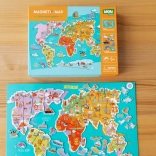 Entdecken Sie eine unterhaltsame und lehrreiche Methode, Kindern die Welt um uns herum näherzubringen. Die magnetische Weltkarte besteht aus 145 Teilen, die sich leicht auf einer magnetischen Unterlage anbringen lassen und ein vollständiges Bild der Welt ergeben.