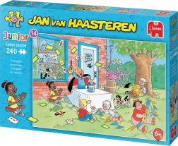 Tauchen Sie ein in die bunte, witzige Welt der JUMBO-Puzzles aus der Kollektion Jan van Haasteren Junior. Jedes Teil führt zu neuen Schmunzelmomenten – von der ikonischen Haifischflosse bis zu unauffälligen Figuren und überraschenden Szenen. Das Motiv Zauberer bietet eine dynamische, lustige Szenerie, die Kinder und Erwachsene gleichermaßen begeistert.