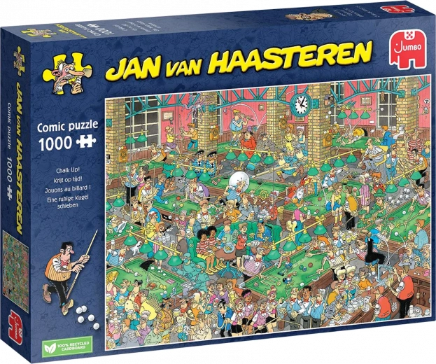 Begeben Sie sich auf ein lustiges Abenteuer mit dem **Jumbo Puzzle Jan Van Haasteren Billard 1000 Teile**. Diese Puzzles von Jan van Haasteren sind bekannt für ihre farbenfrohen und detaillierten Illustrationen, die eine Vielzahl an humorvollen Details enthalten, um Sie stundenlang zu unterhalten.