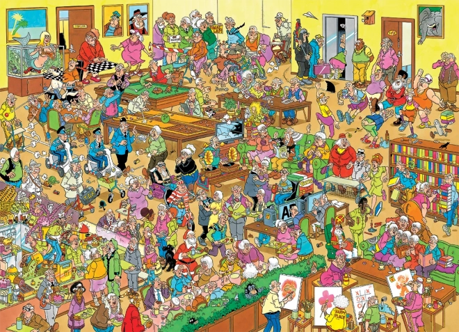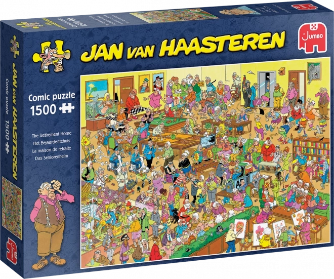 Entdecken Sie den unterhaltsamen und detaillierten Illustrationsstil von Jan van Haasteren mit dem Jumbo Puzzle 'Seniorenheim', bestehend aus 1500 Teilen. Dieses Puzzle bietet zahlreiche amüsante Szenen und versteckte Details, die Ihre Aufmerksamkeit über Stunden hinweg fesseln werden.