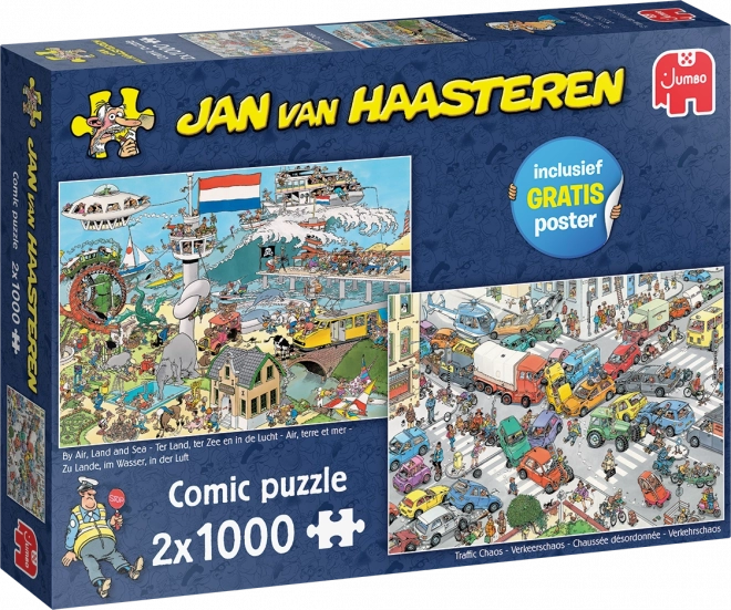 Entdecken Sie die faszinierenden und humorvollen Welten des Jan van Haasteren mit diesem speziellen Puzzle-Doppelset von JUMBO. Enthalten sind zwei einzigartige Motive: 'Rembrandts Studio' und 'Galerie der Kuriositäten', die jeweils aus 1000 Teilen bestehen. Ein zusätzlicher Poster ergänzt das Set und bietet weitere Inspiration.