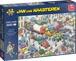 Entdecken Sie die Welt der witzigen Illustrationen von Jan van Haasteren – farbenfroh, dynamisch und bis ins letzte Detail durchdacht. Das Motiv Verkehrschaos ist gespickt mit Gags, verdrehten Situationen und Überraschungen, die bei jedem neuen Blick für Unterhaltung sorgen. Mit 3000 Teilen ist es eine großartige Herausforderung für erfahrenere Puzzler oder als Familienprojekt.