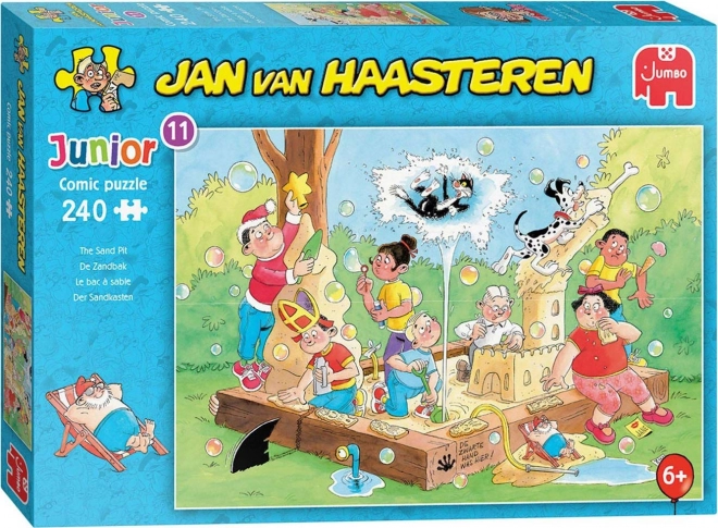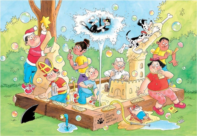 Der legendäre Illustrator Jan van Haasteren bringt Kindern und Erwachsenen jede Menge Lachen und Entdeckungen. Die Szene im Sandkasten ist voller bunter Kleinigkeiten und versteckter Gags – finden Sie die Haifischflosse, Hände ohne Körper, den Nikolaus oder sogar das Selbstporträt des Künstlers? Jedes Zusammensetzen offenbart neue Details.