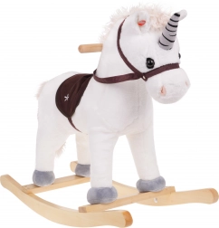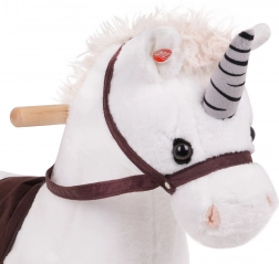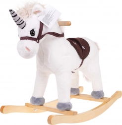 Der Reitsitz ist auf Komfort und Sicherheit ausgelegt, Holzgriffe sorgen für einen sicheren Halt und die Kufen ermöglichen ein sanftes Schaukeln. Das Spiel mit dem Einhorn fördert die Motorik, das Gleichgewicht und die Fantasie der Kinder.