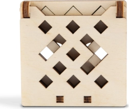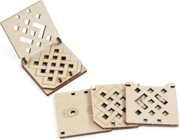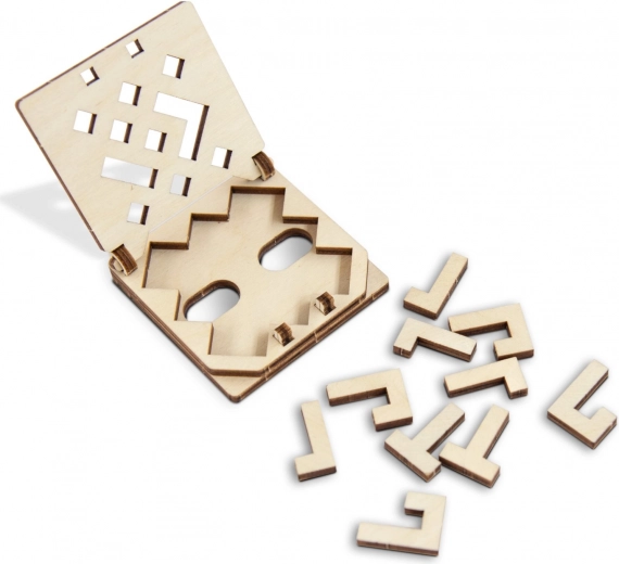 Das Knobelspiel kann naturbelassen oder bemalt werden (z. B. mit Filzstiften)