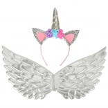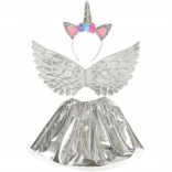 Wunderschönes Einhornkostüm ist die perfekte Wahl für kreatives Spielen und Karneval. Es beinhaltet einen silbernen Rock, Flügel und ein Stirnband mit Horn, das Ihrem Kind einen bezaubernden märchenhaften Look verleiht.
