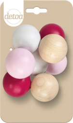Acht bunte bewegliche Kugeln verbunden an einer Schnur. Sie helfen, die Feinmotorik der Hände zu entwickeln und sind für Kinder ab 6 Monaten geeignet. Das Produkt erfüllt die EU-Anforderungen an die Sicherheit von Spielzeug.