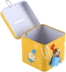 Dieses Modell einer Kinderblechspardose ist so gestaltet, dass es sowohl einfach als auch praktisch ist. Dank seiner sicheren Bauweise und dem attraktiven Aussehen mit Zeichentrickfiguren ist es das perfekte Accessoire für jedes Kind.
