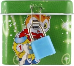 Perfekt für Kinder, die das Sparen lernen, verfügt die Spardose über ein stabiles Schloss, das sicherstellt, dass die Münzen dort bleiben, wo sie sein sollen. Erhältlich in vier verschiedenen Farben, bietet sie für jedes Kind etwas.