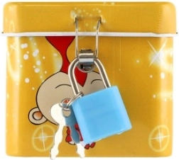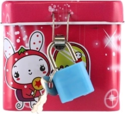 Die Spardose ist mit einem sicheren Schloss und Schlüssel ausgestattet, was gewährleistet, dass der Inhalt sicher aufbewahrt bleibt.