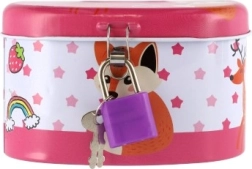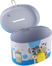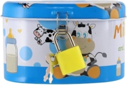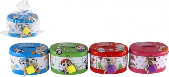 Ideale Sparbüchse für Kinder, die Sicherheit und Spaß kombiniert. Die Kinder Sparbüchse ist aus robustem Metall gefertigt und mit einem kleinen Schloss versehen, das gewährleistet, dass das Geld sicher bleibt. Der Deckel ist mit fröhlichen Illustrationen verziert, die jedem kleinen Sparer gefallen: