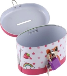 Die Sparbüchse ist mit einem kleinen, aber sicheren Schloss ausgestattet, das dafür sorgt, dass alle Ersparnisse Ihres Kindes geschützt sind.