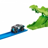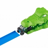 Zuru Metal Machines Krokodilangriff ist eine Autorennbahn, die Sie in die Welt des Action-Spaßes zieht. Stellen Sie sich dem gefährlichen Krokodil, das auf Ihren Monster Truck lauert. Erreichen Sie genügend Geschwindigkeit, um die Krokodilzähne sicher zu überwinden.