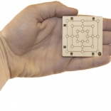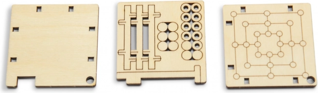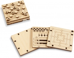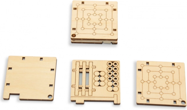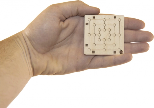 Der kleine hölzerne Spielplan passt in die Handfläche und in die Tasche. Ideal für unterwegs, in der Schule oder bei der Arbeit – ein kurzes Spiel, wann immer sich ein Moment ergibt.