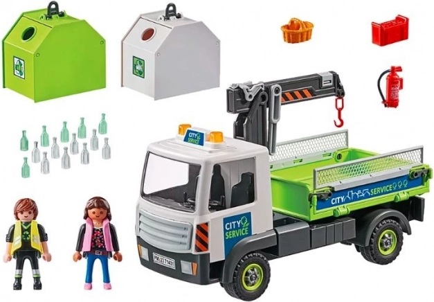 Der große Kran hebt problemlos Container mit Flaschen an und lädt sie auf den Anhänger des LKWs. Dank zahlreicher realistischer Details und Funktionen regen diese Sets aus der PLAYMOBIL City Life Reihe zur Stadtreinigung Kinder ab 4 Jahren dazu an, durch Spiel etwas über Umweltschutz zu lernen.