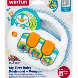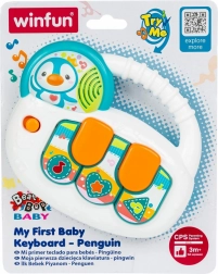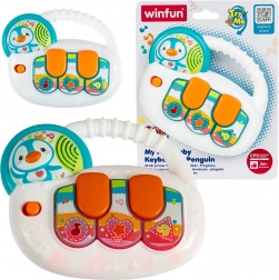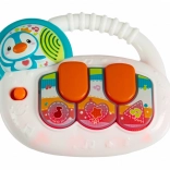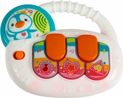 Das Pinguin-Klavier bietet großen Spaß für kleine Musikanten. Es verfügt über drei große orangefarbene Tasten, die beim Drücken fröhliche Melodien und Lichteffekte erzeugen. Dank des praktischen Griffs ist es leicht zu tragen und somit das ideale Reisespielzeug.