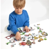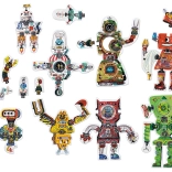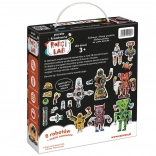 Das kreative Puzzle Robot Lab bietet endlose Kombinationsmöglichkeiten. Die Grundlage bilden 63 hochwertige, glänzende und präzise ausgestanzte Teile, die dank cleverer Formen und Illustrationen perfekt zusammenpassen. Zunächst bauen Kinder 8 große Roboter und verändern anschließend deren Erscheinung mithilfe „zusätzlicher“ Teile – oder erschaffen völlig neue Figuren und Maschinen.