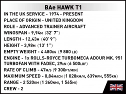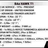 COBI Armed Forces BAe Hawk T1 ist ein Bausteinset, das Ihnen ermöglicht, ein Modell des Flugzeugs zu konstruieren, das seit 1976 bei der britischen Royal Air Force (RAF) dient. Dieses Set ist ideal für alle Fans der Flugzeugmodellierung und Militärtechnik. Das Modell ist im Maßstab 1:48 und enthält 362 Teile, die zusammen Flügel mit einer Spannweite von 19,5 cm bilden. Das Modell bietet ein öffnendes Cockpit und abnehmbare Räder für eine effektvolle Präsentation auf dem Ständer.