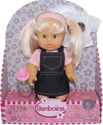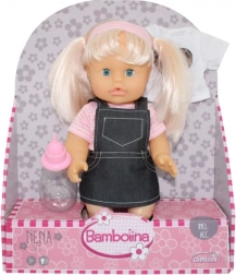 Die Puppe mit blonden Zöpfen ist in einer attraktiven rosa Box der Marke Bambolina verpackt – bereit, als Geschenk zu begeistern.