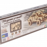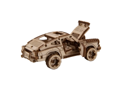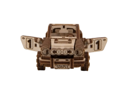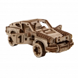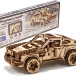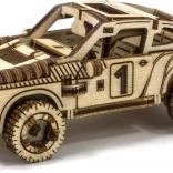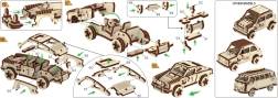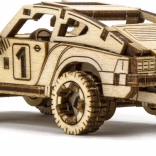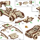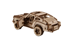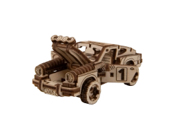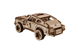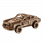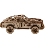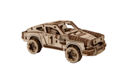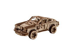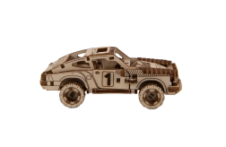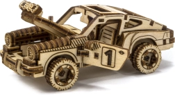 Präzise ausgeschnittene Teile aus Birkensperrholz greifen exakt ineinander. Der Aufbau dauert etwa 40 Minuten und gelingt dank leichter Schwierigkeitsstufe wirklich jedem. Das vom Motorsport inspirierte Modell begeistert Schulkinder ebenso wie erwachsene Fans.